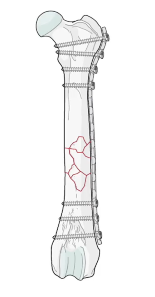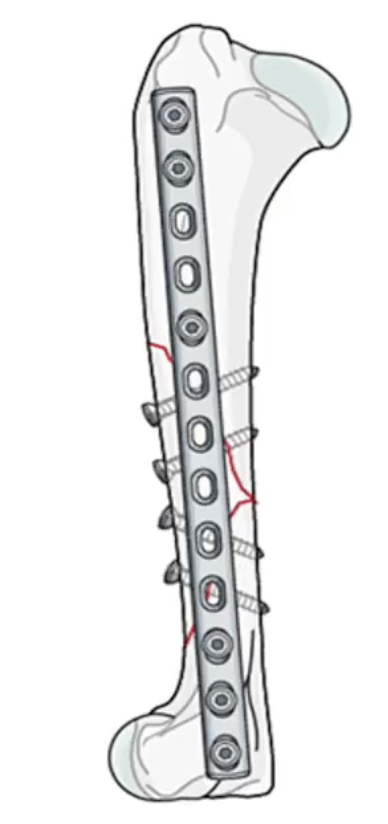 - It protects the screws and the fracture site from mechanical forces (bending, torsion, traction).