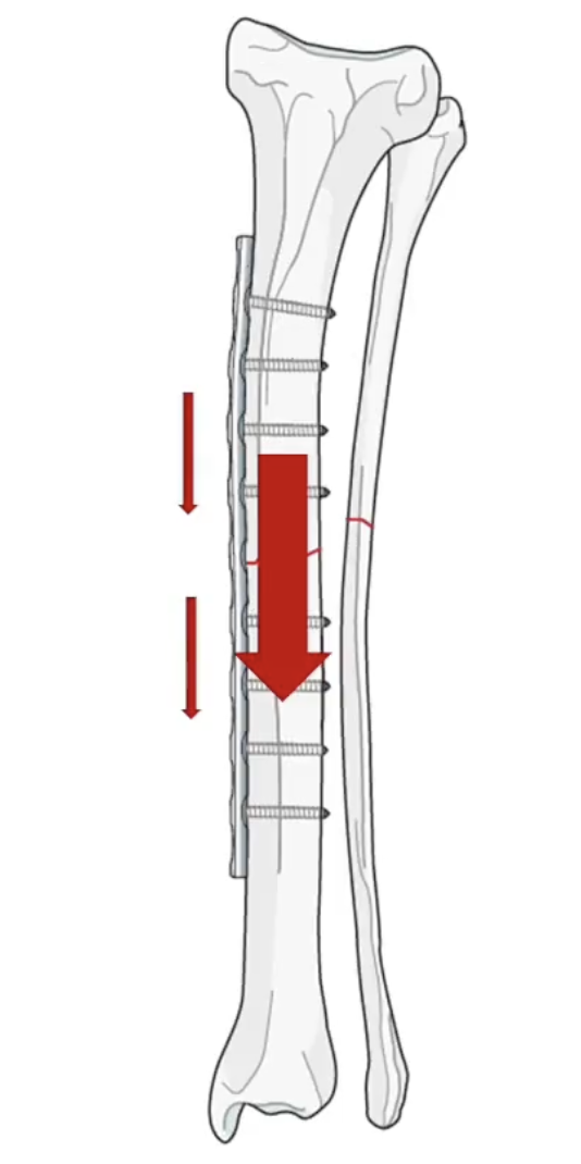 - The bone bears part of the forces, but the plate takes over in case of significant stresses.