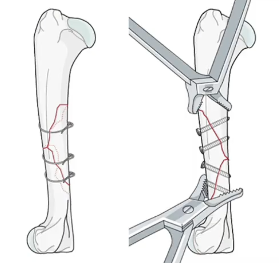 - Long oblique fractures where compression by the screw alone is not enough.